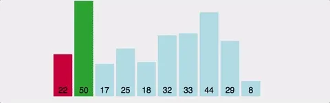 값을 먼저 고른 뒤 값이 들어갈 자리를 찾는 삽입 정렬과 달리, 선택 정렬은 자리를 먼저 고르고 그 자리에 들어갈 값을 찾는 방법이다.