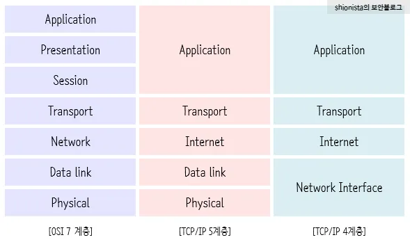 osi 상위 레이어와 하위 레이어를 통합해 더 간단하게 표현했다는 점에서 차이가 있다
