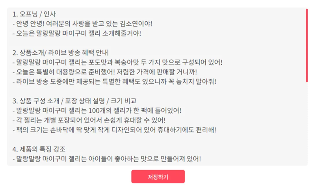 생성된 대본을 확인하고 수정하고 싶은 부분을 수정하여 저장합니다.