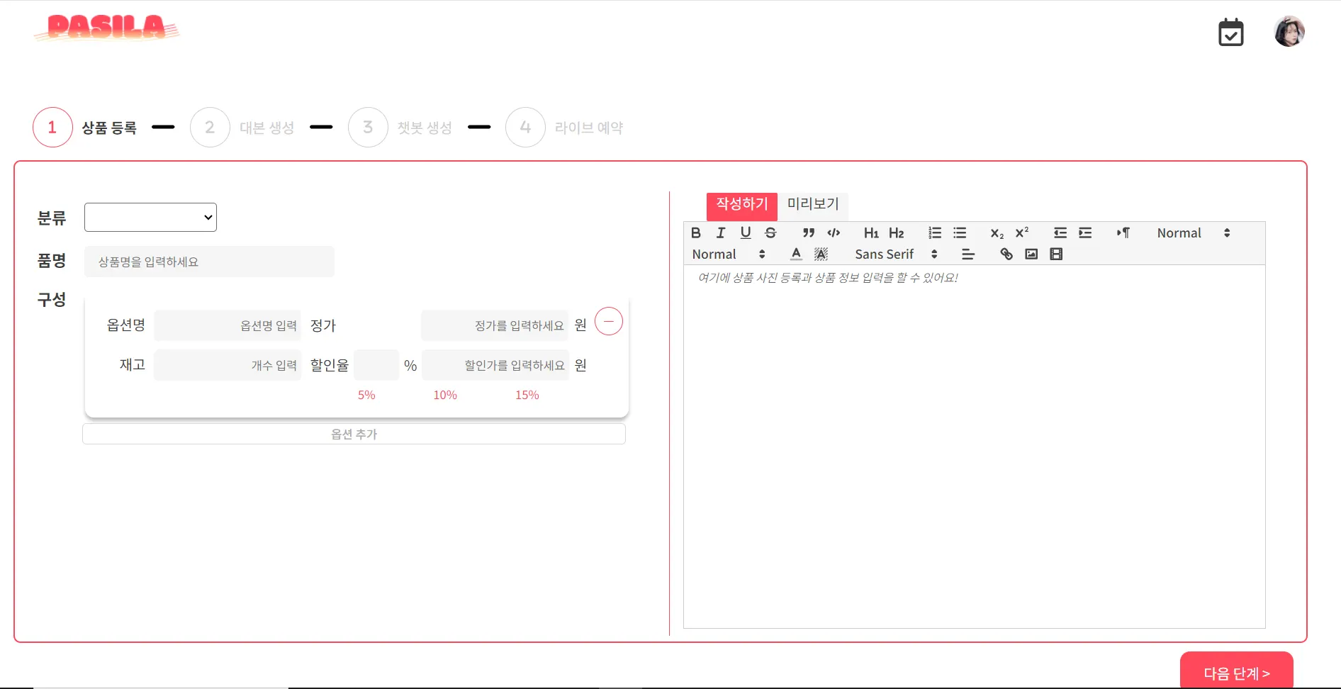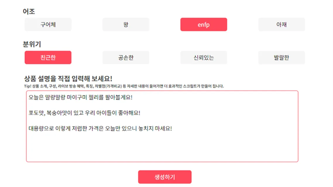 대본의 어조, 분위기를 설정, 추가 상품 설명을 입력하여 대본을 생성합니다.