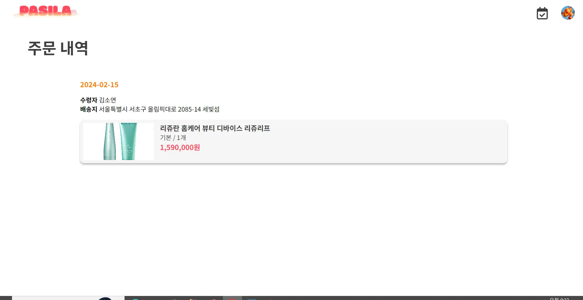 내가 주문한 주문 내역을 확인할 수 있습니다.
