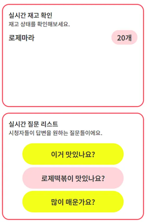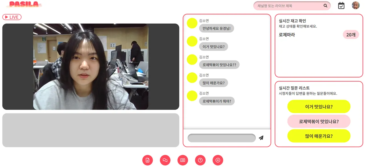 실시간 채팅 및 재고내역, 질문 리스트를 확인할 수 있습니다.