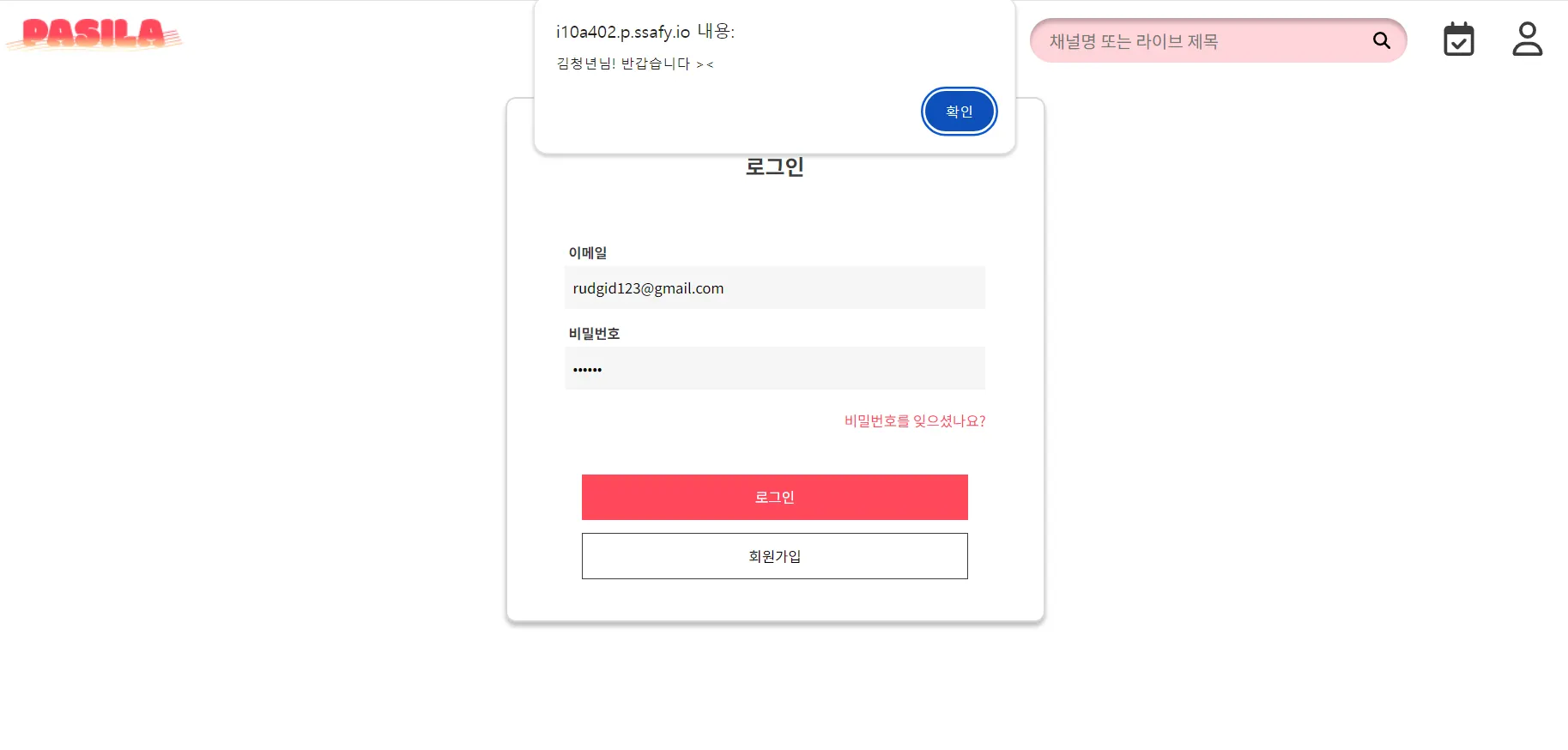 이메일과 비밀번호로 로그인을 진행할 수 있습니다.