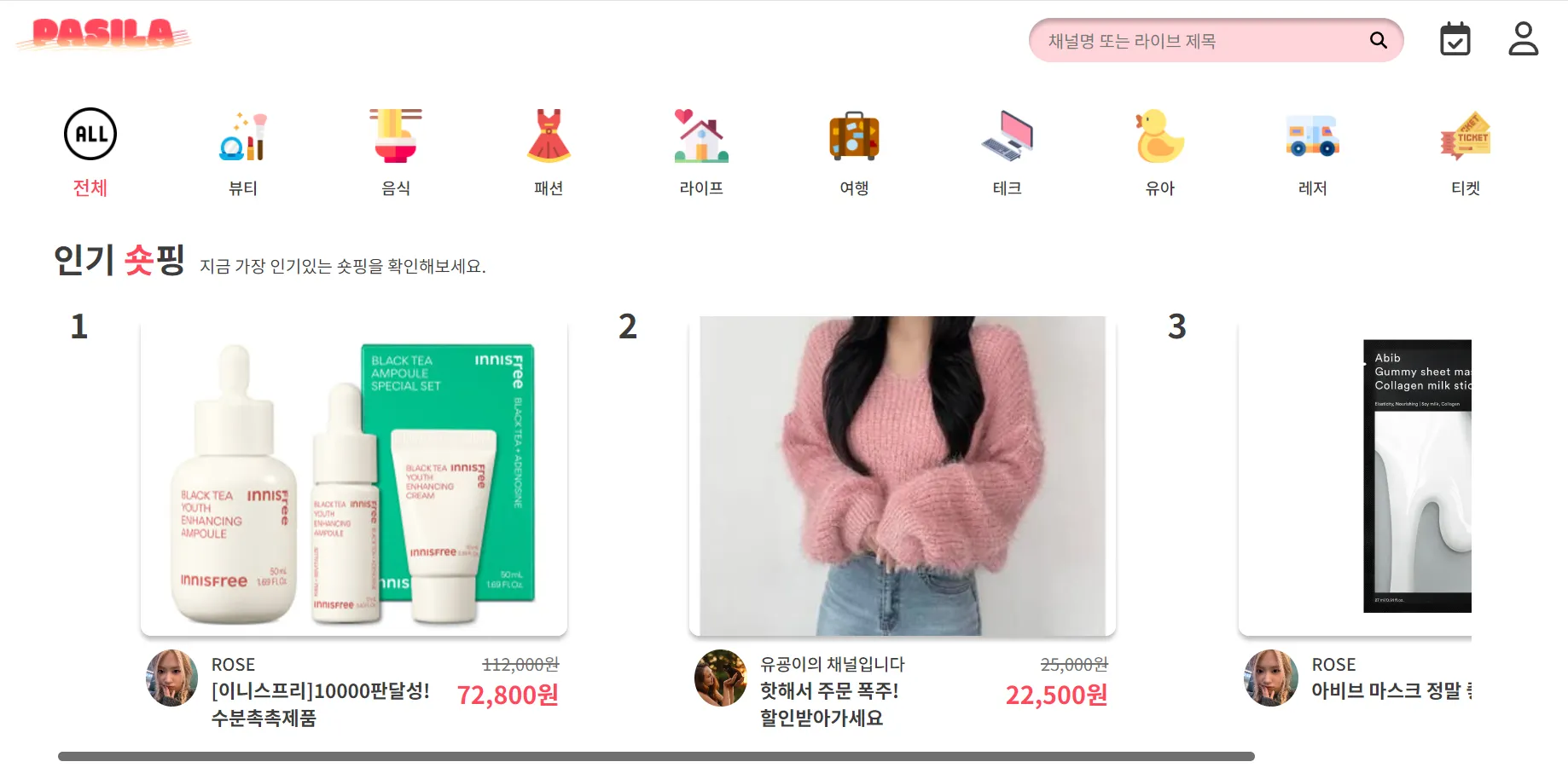 상품을 클릭하여 라이브를 시청할 수 있습니다.