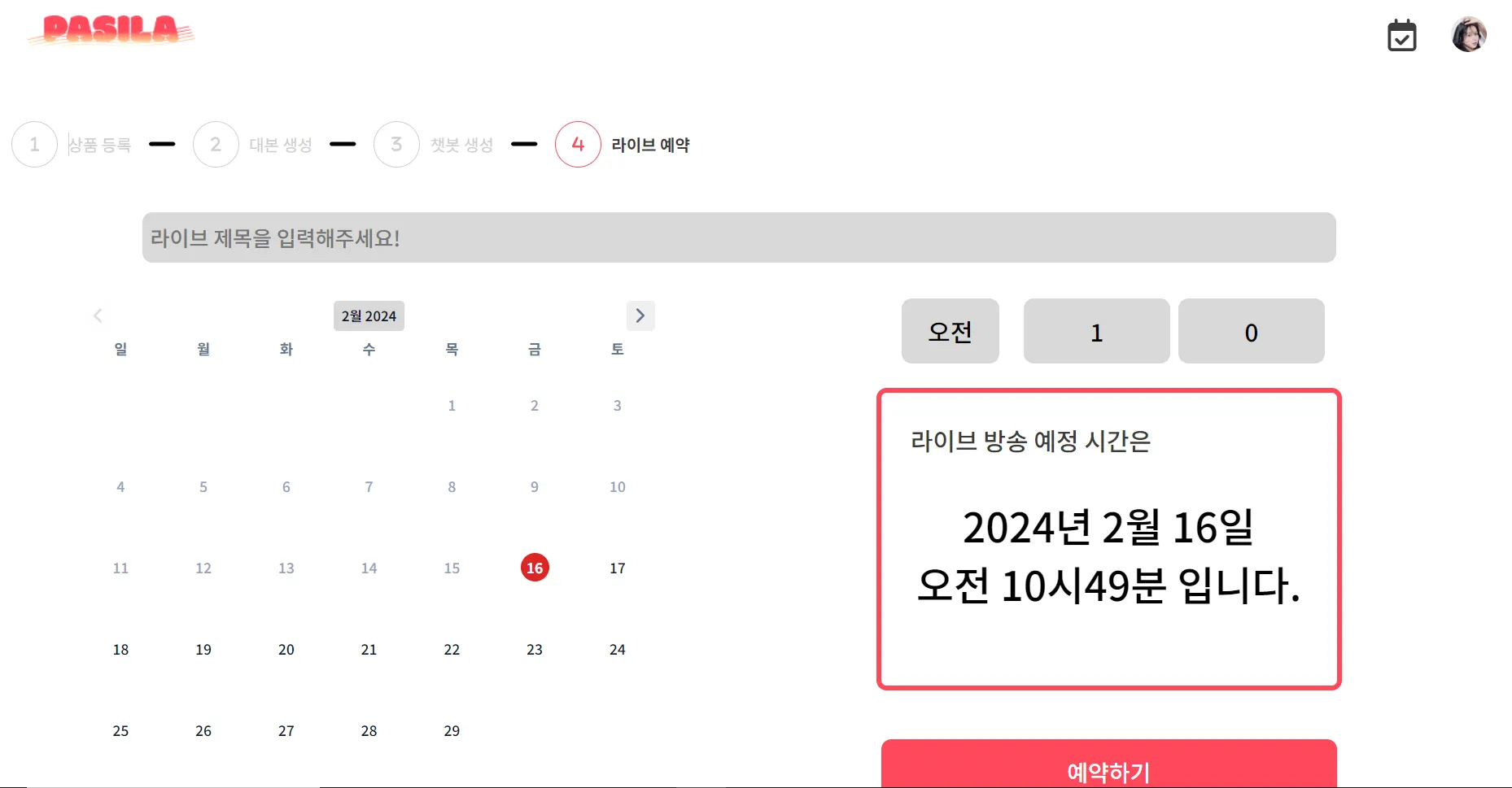 오른쪽 상단 프로필 사진을 누르고 라이브 예약을 클릭합니다.