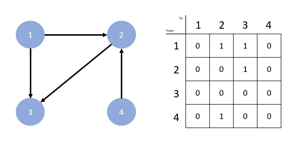 각 정점들 사이에 간선이 존재하는지 여부를 0이나 1로 나타냄
