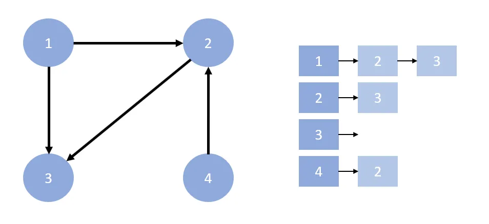 간선이 방향이 존재하며 간선의 방향으로만 이동할 수 있음
