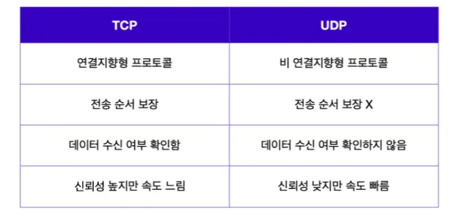 비연결지향 → TCP와 비교해 빠른 속도 보장