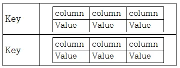 value에는 또다른 key/value가 들어갈 수도 있음. 이를 column family라고함