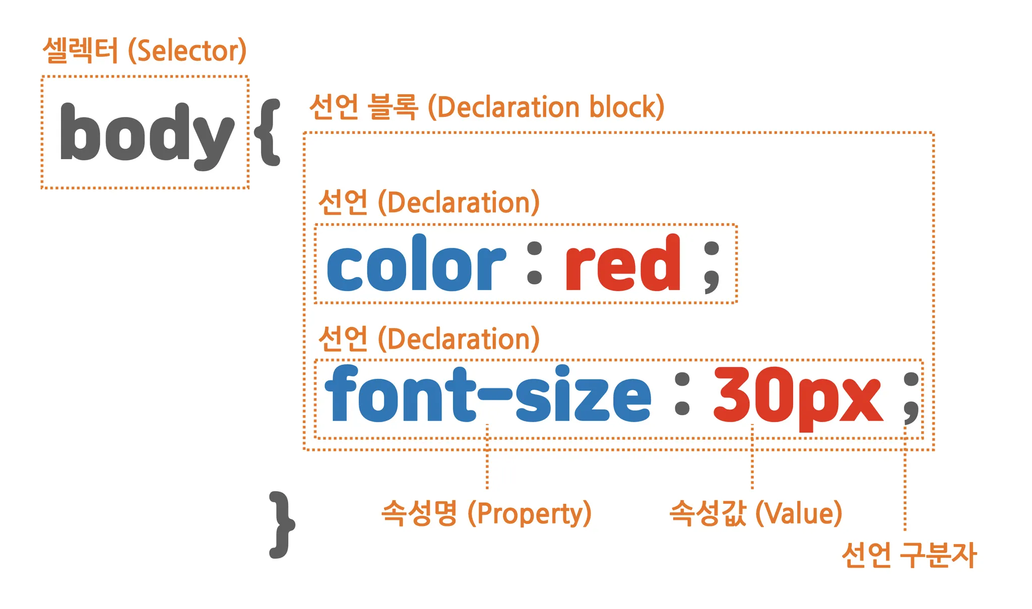 선언 블록 안에 이 요소에 적용할 내용을 작성