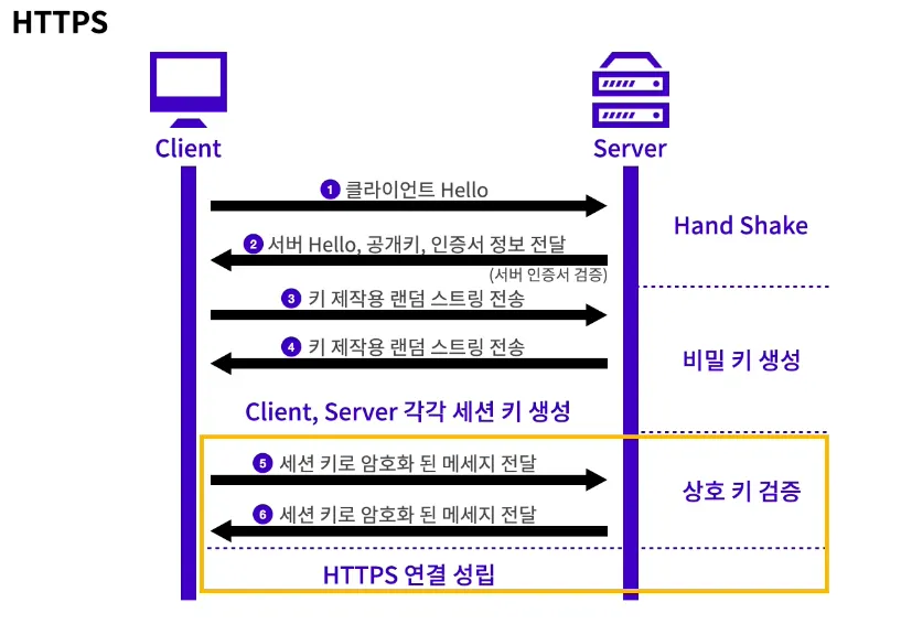 요청을 받으면 서버는 인증서와 함께 응답 전송. 클라이언트는 응답 받으면 인증서의 도메인과 응답 객체의 도메인이 동일한지 확인