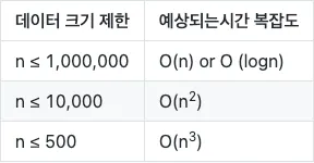 시간제한과 주어진 데이터 크기 제한에 따른 시간 복잡도를 어림잡아 예측할 수 있어야함